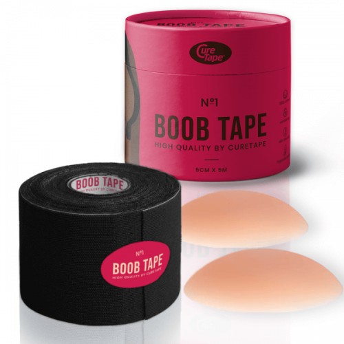 BoobTape No.1 від CureTape® для Тейпування Грудей (Бубтейп від Кюртейп) + Силікононові Вкладки в Комплекті, чорний