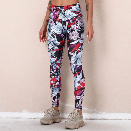 Легінси з Яскравим Принтом Високий Пояс Розмір, лілії L
