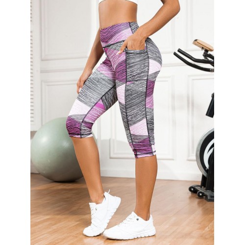 Красиві Легінси Капрі з Кишенею на Стегні, Високий Пояс, рожевий принт XL