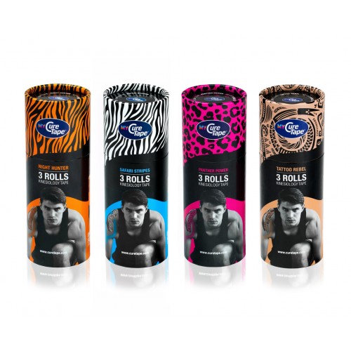 Набір MyCureTape®, у який входить з 3 штуки кінезіо тейпів CureTape® розміром 5см х 2,5м в тубусі. Кожен тубус містить три різних кольори, об’єднаних в одну спільну тематику і які чудово поєднуються між собою.
