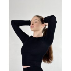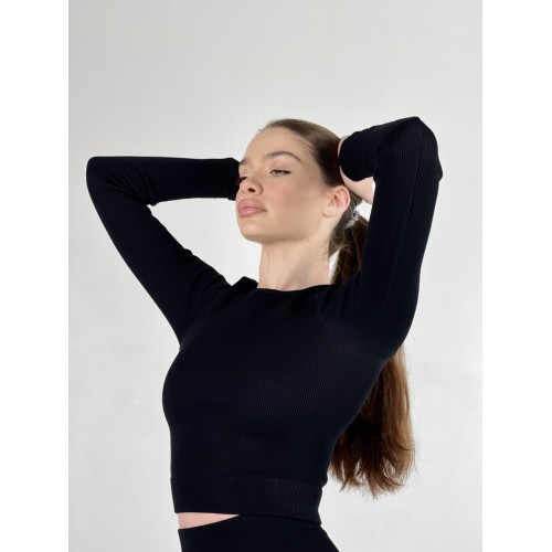 Кроп Топ Рашгард Рубчик з Довгим Рукавом, Виробництво Україна, чорний L/XL